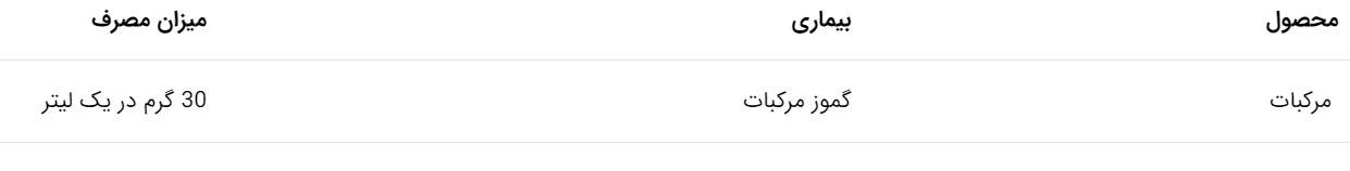- برای بیماری گموز مرکبات، 30 گرم در یک لیتر آب استفاده کنید.
