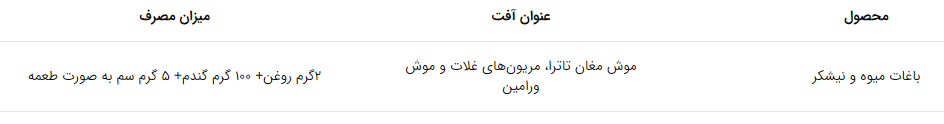 - از خوردن سم، آلودگی مواد غذایی انسان و دام، تماس سم با پوست، چشم، لباس و استنشاق ذرات سم خودداری شود.