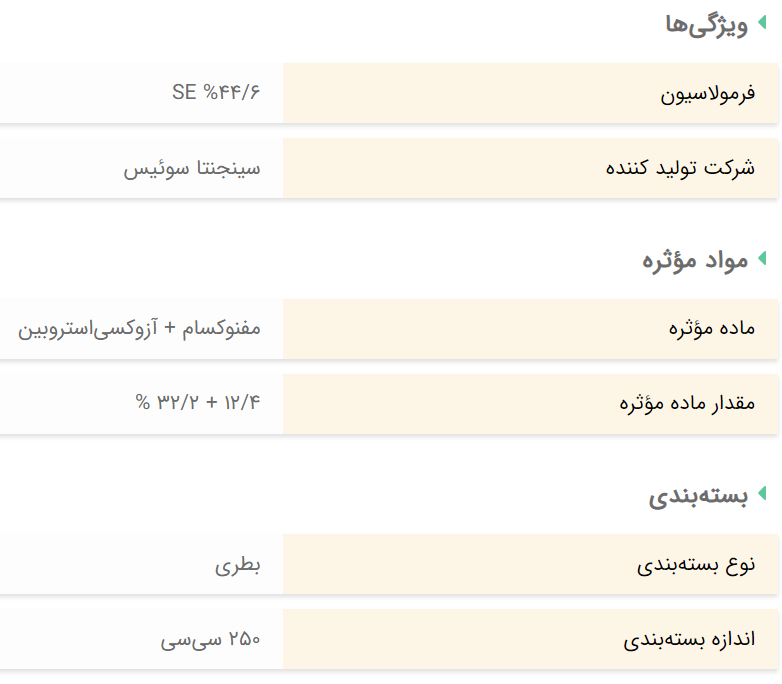 - حاوی دو ماده مؤثره آزوکسیاستروبین و مفنوکسام