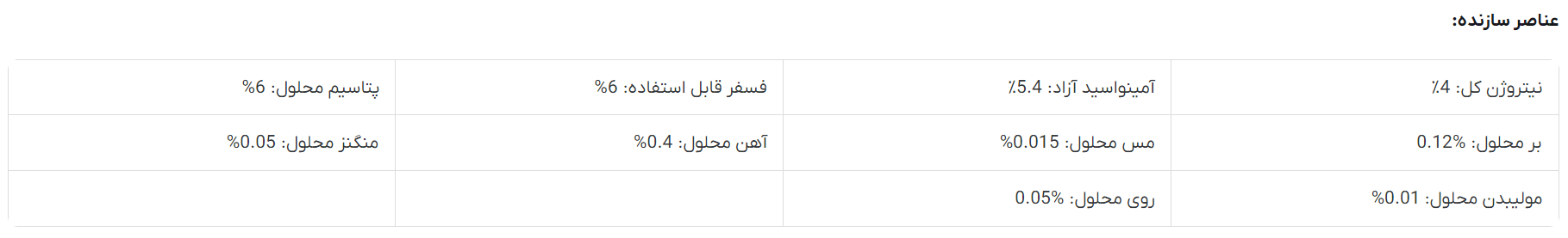 این ترکیب قابل مصرف به صورت کود آبیاری میباشد.
