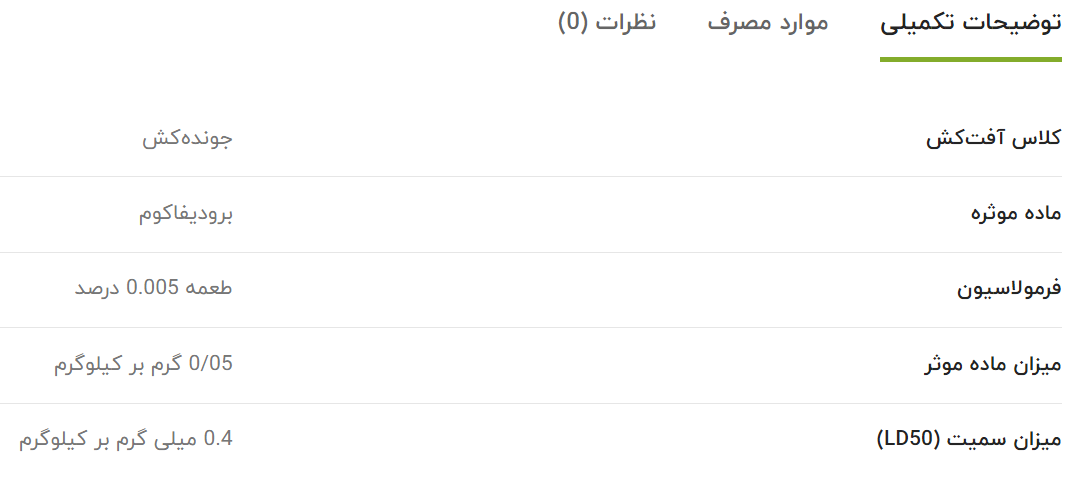 موش کش Tomcat(Brodifacoum) B0/005% تــام کـــت (برودیفاکوم) وزن نیم کیلوگرم