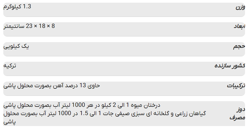 13 % آهن EDTA ـ پی اچ 5 الی 6 میباشد